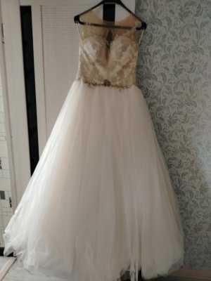 Платье свадебное, атлас плюс гипюр, цвет лёгкий беж. Без пятен, без изьянов