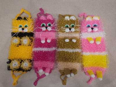 Вязанные мочалки ручной работы из прочной пропиленовой нити, которые не деформируются при использовании.