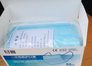 Нетканый трёхслойный SMS/СМС, 3-x слойная защита Китайское производство Размер маски: 17,5*9,5 см.