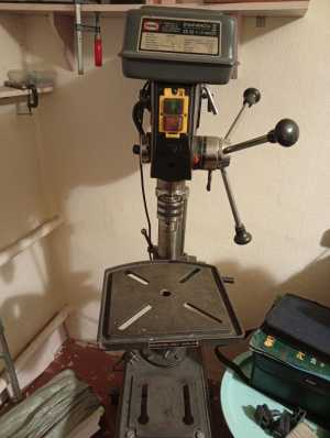 сверлильный станок на стойке Е-1516 В/230. Мощность 750 вт максимальный диаметр сверления 16 мм.