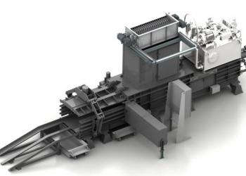 Горизонтальный гидравлический пресс с механизированной выгрузкой для прессования вторичного сырья в кипы.