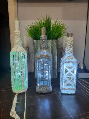 Продаётся стильная настольная лампа в виде бутылки с уникальным дизайном.