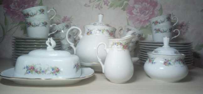 35 предметов (10 чашечек, 10 блюдец диаметром 15 см, 10 десертных тарелок диаметром 19 см, блюдо под торт, чайник объёмом 1...