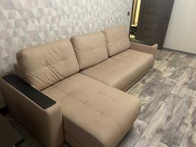 Продам угловой диван в отличном состоянии. Вставки под темное дерево. Два места для белья.